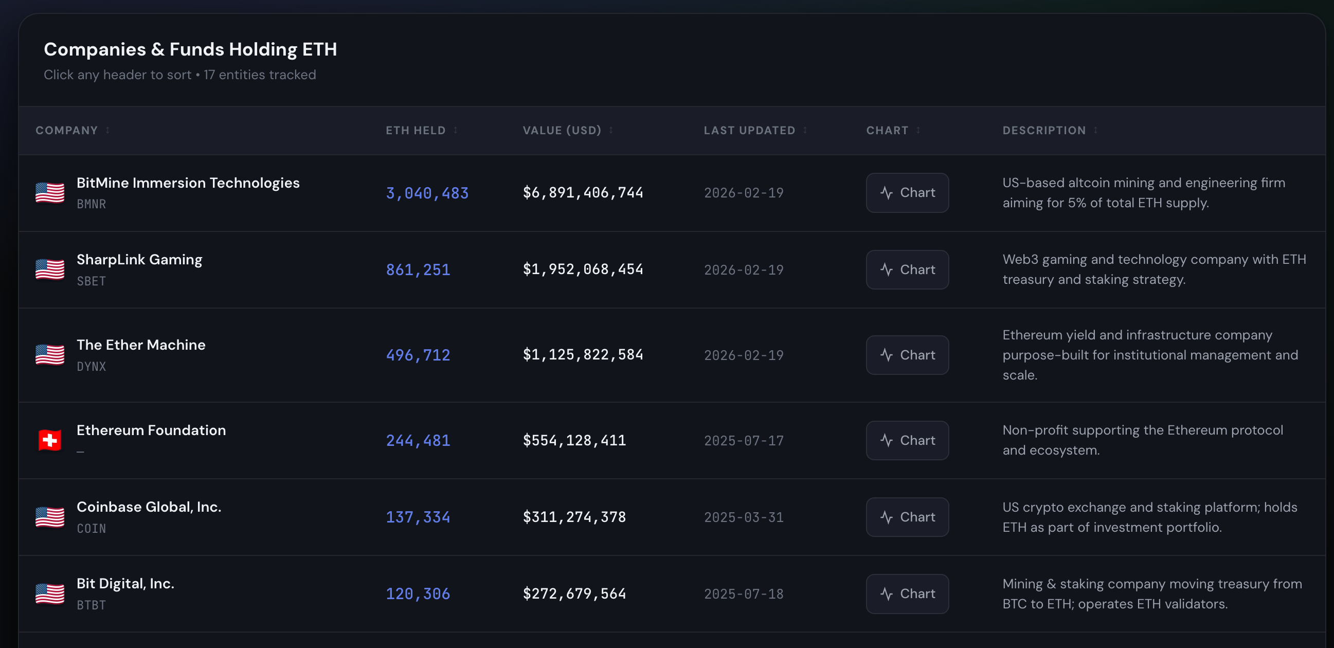BitMine, chaired by Fundstrat's Tom Lee, is the largest publicly traded ETH treasury company, holding over 4.5M ETH valued at ~$9.3B.