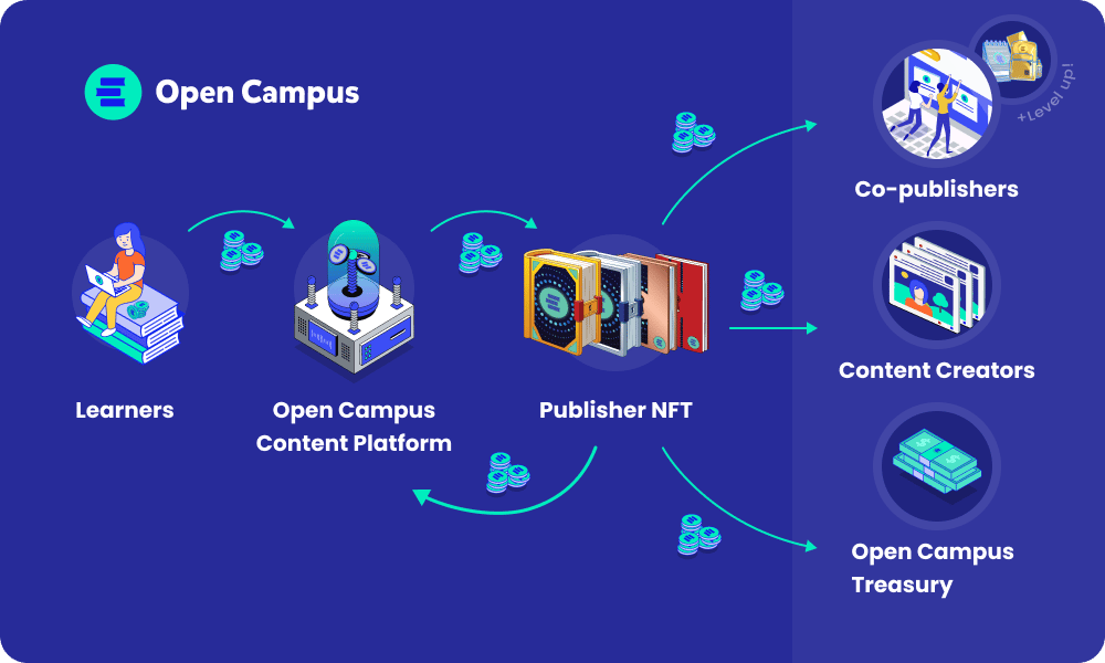 The Publisher NFT model, launched through TinyTap, is among the most innovative parts of Open Campus. It lets teachers mint NFTs representing ownership in educational courses. Holders can co-publish and share revenue generated by the course.