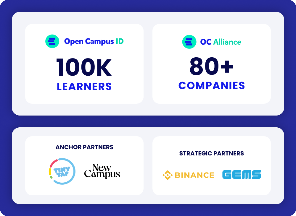 The Open Campus ecosystem is visibly growing, though its adoption still leans early-stage. According to official data, Open Campus ID has surpassed 100K learners, while the OC Alliance now includes 80+ companies building or integrating within the EDU Chain network. Anchor partners such as TinyTap and NewCampus, alongside strategic partners like Binance and GEMS, bring both credibility and access to broader audiences.
