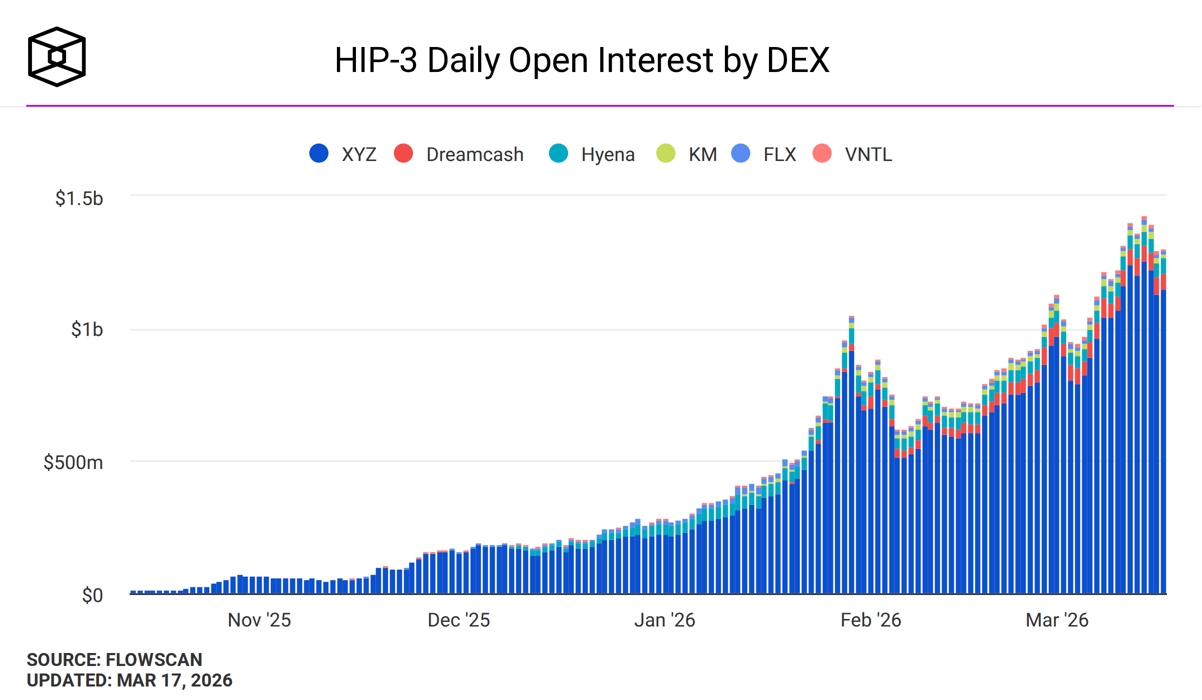Hyperliquidโs HIP-3 markets hit $1.43B open interest.