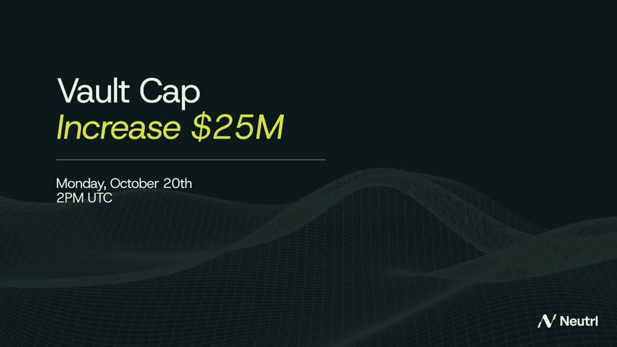 Due to overwhelming demand, Neutrl will raise the vault cap by an additional $25M, opening for new deposits Monday, October 20 at 2PM UTC.