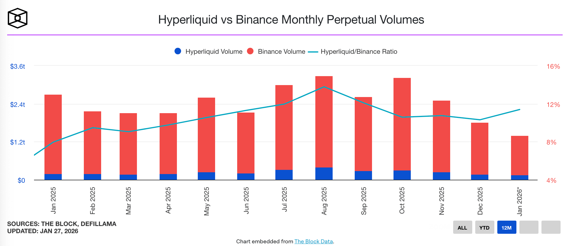 Recent data shows Hyperliquid quoting roughly $1 spreads versus around $5.50 on Binance, alongside deeper order book liquidity.
